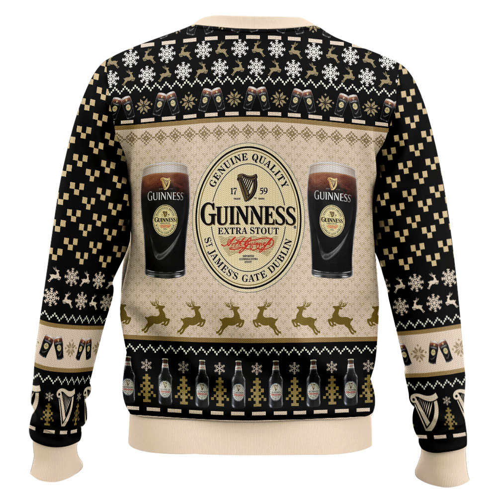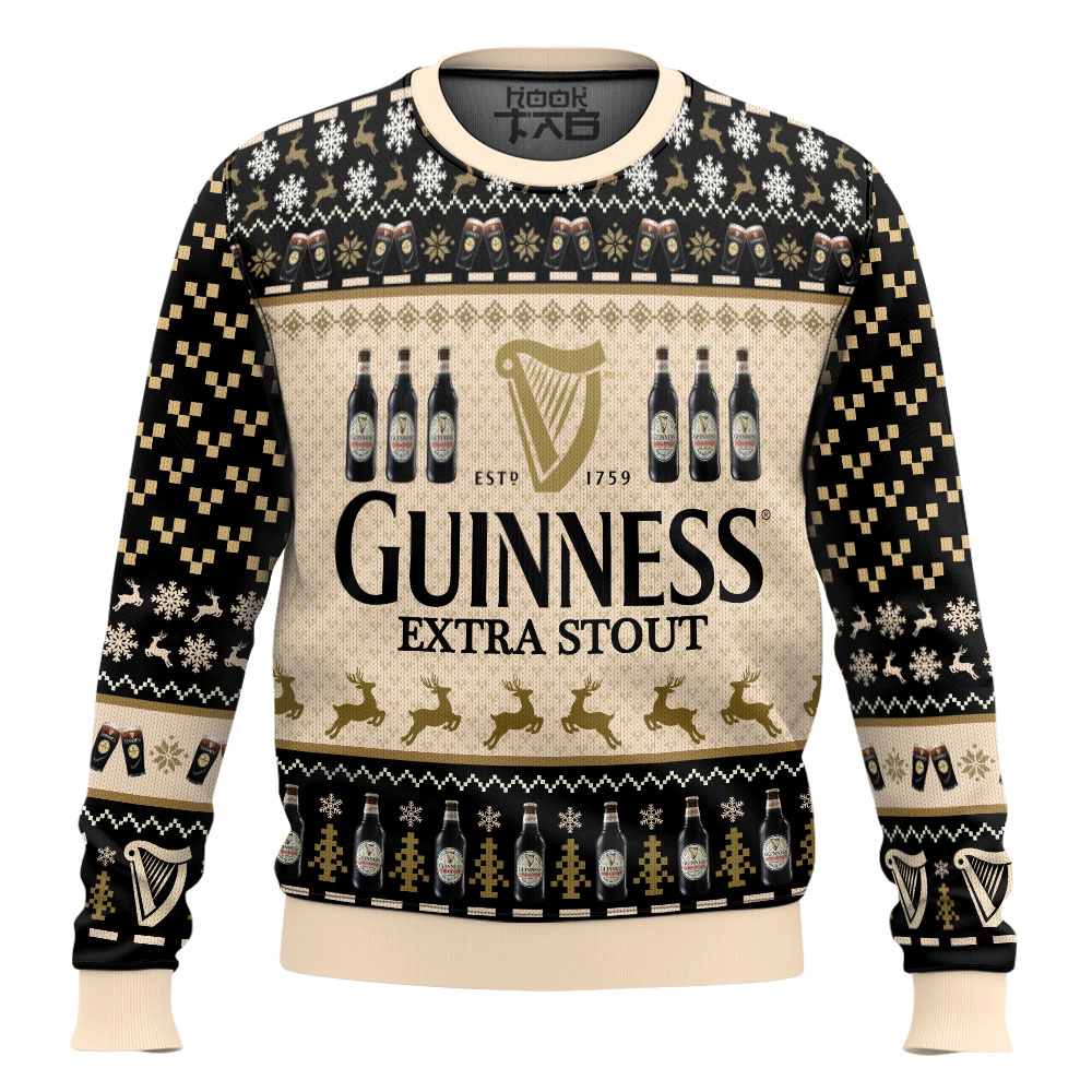 Guinness Extra Stout Ugly Christmas Sweater This Curvy Glams exclusive Ugly Christmas Sweater design is guaranteed to get attention and get the party started. It?s sure to be your best holiday purchase yet! Material: Our sweaters are made from high-quality polyester wool blend, which keeps you warm and never crack, peel or flake. Features a specialty high definition heat-dye application that ensures long lasting color vibrancy even after machine washing. All our sweaters are handcrafted, cut and sewn one-by-one for the highest quality standard Sizing: Unisex fit. Click on size chart button above add to cart button for addiditional sizing information Care Instructions: Regular handwash; Machine wash (max 40? or 105F); Do not bleach; Iron on a low heat;Tumble dry.
