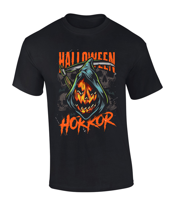 Bring the ultimate spooky vibes this season with the Halloween Horror Pumpkin Grim Reaper T-shirt. Featuring a chilling Grim Reaper holding a sinister jack-o?-lantern pumpkin, this graphic tee captures the dark and thrilling spirit of Halloween night. Perfect for trick-or-treating, horror movie marathons, haunted house visits, or casual October wear, this shirt is designed for fans who love to mix creepy style with comfort.