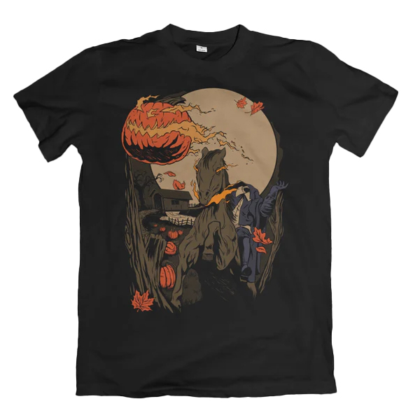 Embrace the chills and thrills of Halloween with the legendary “Headless Horseman” T-shirt! Inspired by the spine-tingling tale of Sleepy Hollow, this shirt brings the iconic figure of the headless rider to life in a bold, haunting design. If you’re a fan of classic horror and spooky lore, this shirt is the perfect way to show off your Halloween spirit with a touch of eerie elegance.