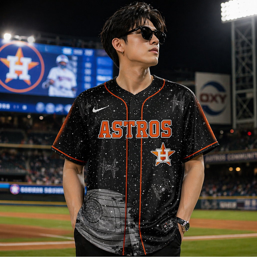 Unleash galactic power with the Houston Astros Star Wars The Force Is Strong In Houston 2026 Baseball Jersey. Blending Astros pride with an iconic space-inspired theme, this jersey delivers a bold, futuristic look for fans who bring energy to every game.