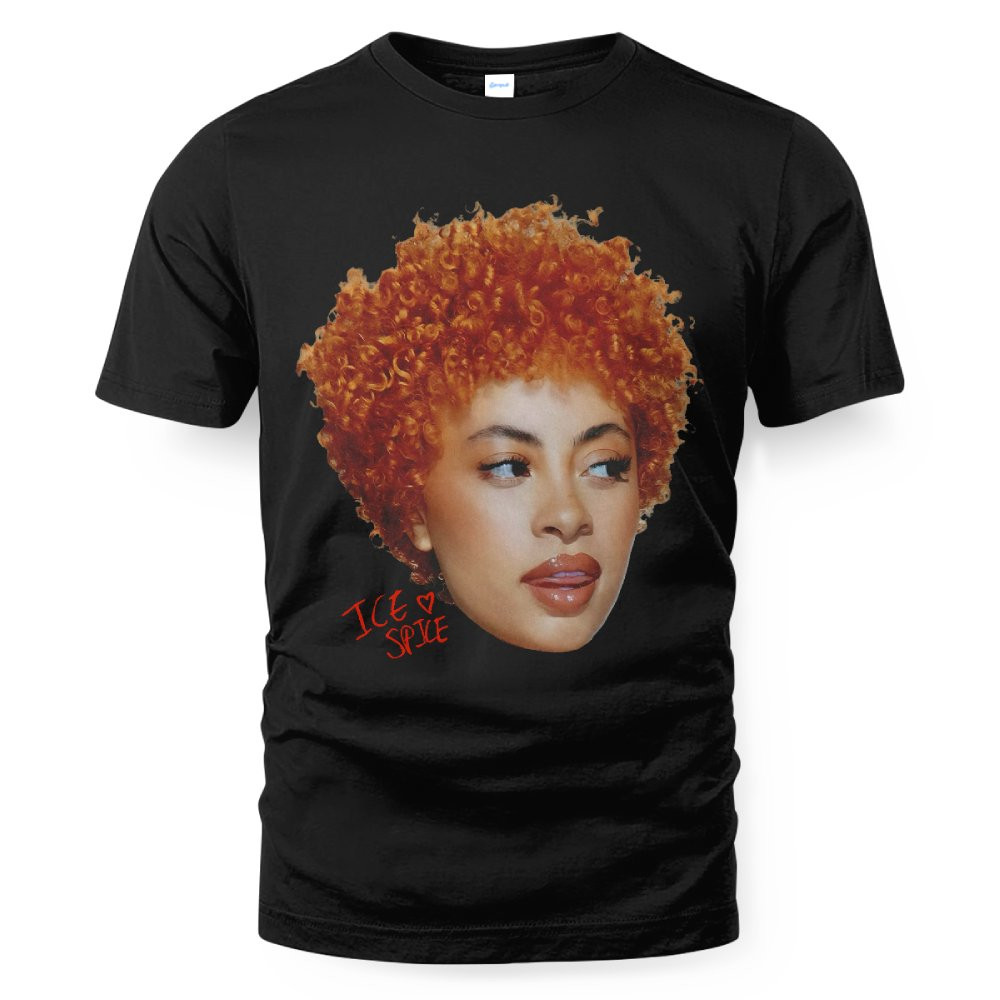 This shirt captures the essence of Ice Spice with a striking, oversized graphic of her face, making a statement that’s as loud as her beats. Whether you’re vibing to her latest hits or just want to show off your admiration for her bold, unique persona, this tee is the perfect addition to your collection.