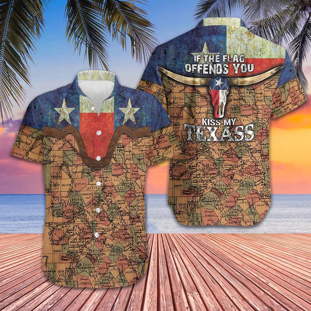 If The Flag Offends You Kiss My Texass Hawaiian Shirt Vintage Texas Flag And Map Pattern Shirt