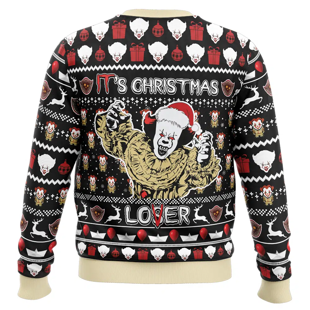 Float into festive fear with the IT’s Christmas Lover IT Ugly Christmas Sweater. Perfect for horror fans and Stephen King enthusiasts, this sweater blends Pennywise’s chilling presence with merry holiday patterns. Whether you’re attending an ugly sweater party, a scary movie marathon, or just want to add a creepy twist to Christmas, it’s the ultimate way to celebrate the season.