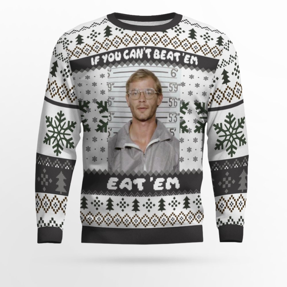 Jeffrey Dahmer Funny Serial Killer If You Can’t Beat ‘Em Eat ‘Em Ugly Christmas Sweater