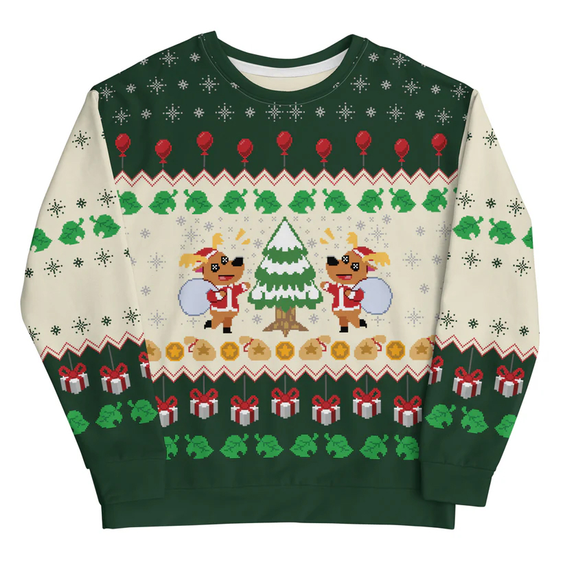 If you’ve spent hours decorating your island for the holidays or just love the relaxing vibes of Animal Crossing, this sweater brings that festive island spirit to life. It’s a fun and playful way to embrace both your favorite game and the magic of the holiday season, making it a must-have for every Animal Crossing fan.