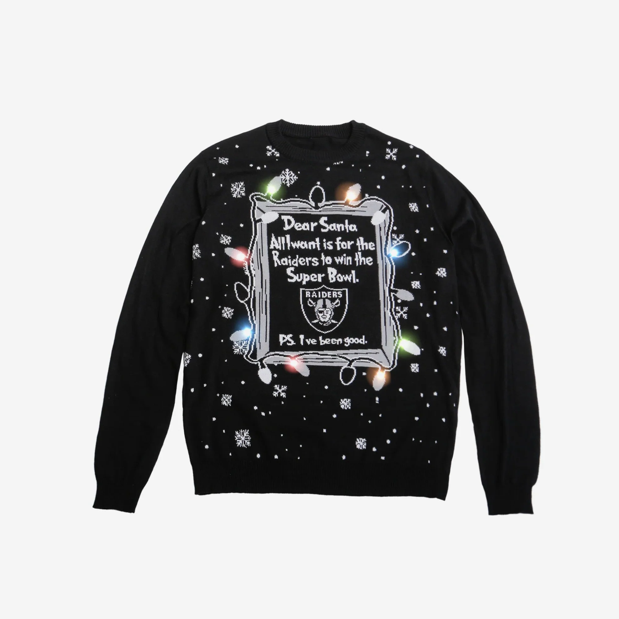Christmas is all about good times, great company, and a little bit of magic. This sweater lets you celebrate with the added touch of Raiders pride. With its bold silver and black colors, and festive graphics, you’ll be spreading holiday cheer while showcasing your team spirit. It’s perfect for any Raiders fan who wants to keep the festive vibe alive with a dash of team loyalty.