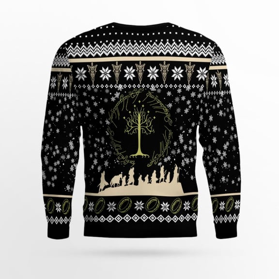 The Lord of The Rings Ugly Sweater showcases various elements from the beloved series, from the One Ring to Gondor motifs, Hobbits, and more. The design balances holiday cheer with a nod to Tolkien’s fantastical world, making it a perfect way to celebrate Christmas while honoring one of the most iconic stories ever told.