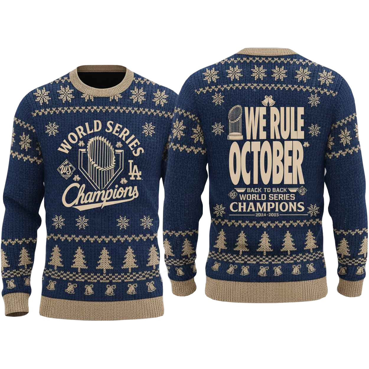Whether you’re at an ugly sweater competition, hosting a holiday party, or cheering on the Dodgers with friends and family, this sweater is perfect for every occasion. The bold “We Rule October” design will make sure you’re noticed, while the comfortable fit ensures you’ll stay cozy while celebrating your Dodgers pride.