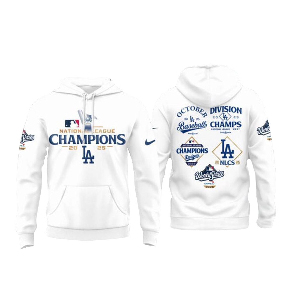 Los Angeles Dodgers National League Champions 2025 White Hoodie Shirt