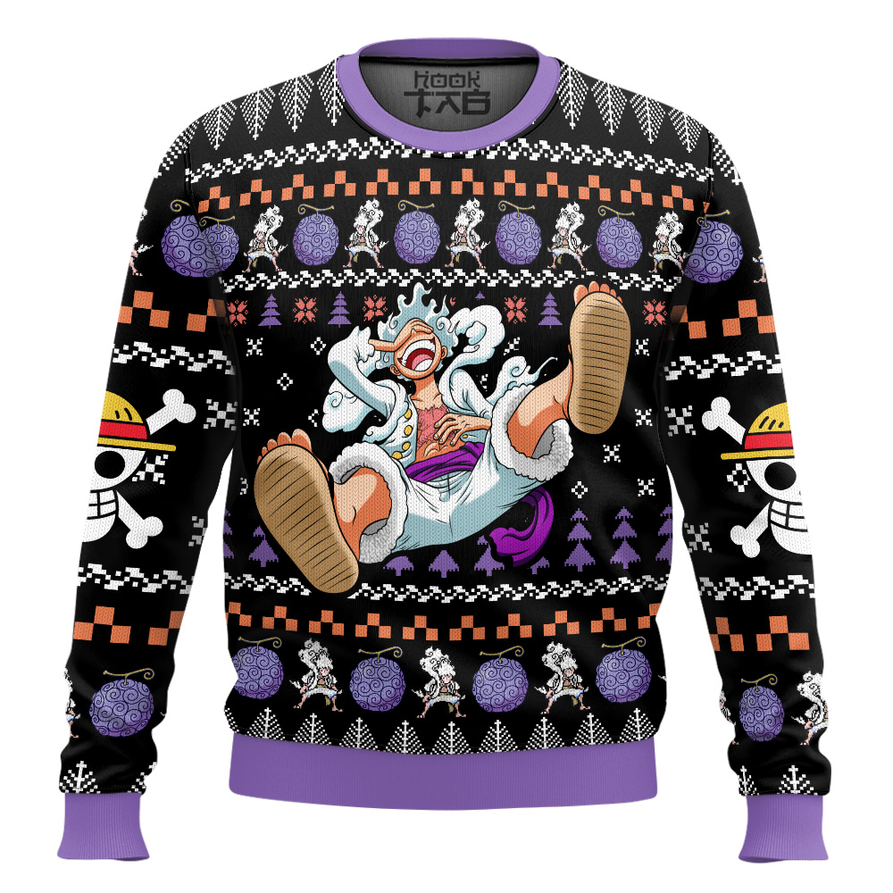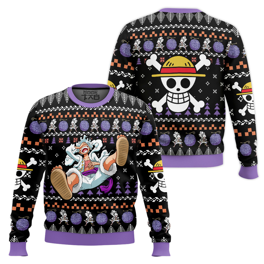Luffy Gear 5 One Piece Ugly Christmas Sweater This Curvy Glams exclusive Ugly Christmas Sweater design is guaranteed to get attention and get the party started. It?s sure to be your best holiday purchase yet! Material: Our sweaters are made from high-quality polyester wool blend, which keeps you warm and never crack, peel or flake. Features a specialty high definition heat-dye application that ensures long lasting color vibrancy even after machine washing. All our sweaters are handcrafted, cut and sewn one-by-one for the highest quality standard Sizing: Unisex fit. Click on size chart button above add to cart button for addiditional sizing information Care Instructions: Regular handwash; Machine wash (max 40? or 105F); Do not bleach; Iron on a low heat;Tumble dry.