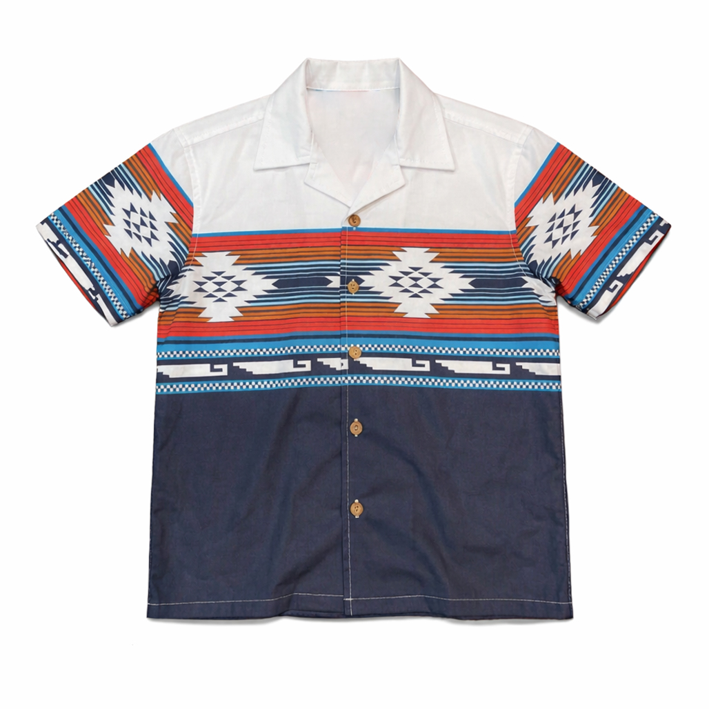 Style: Button-up Hawaiian shirt with vintage country-inspired graphics