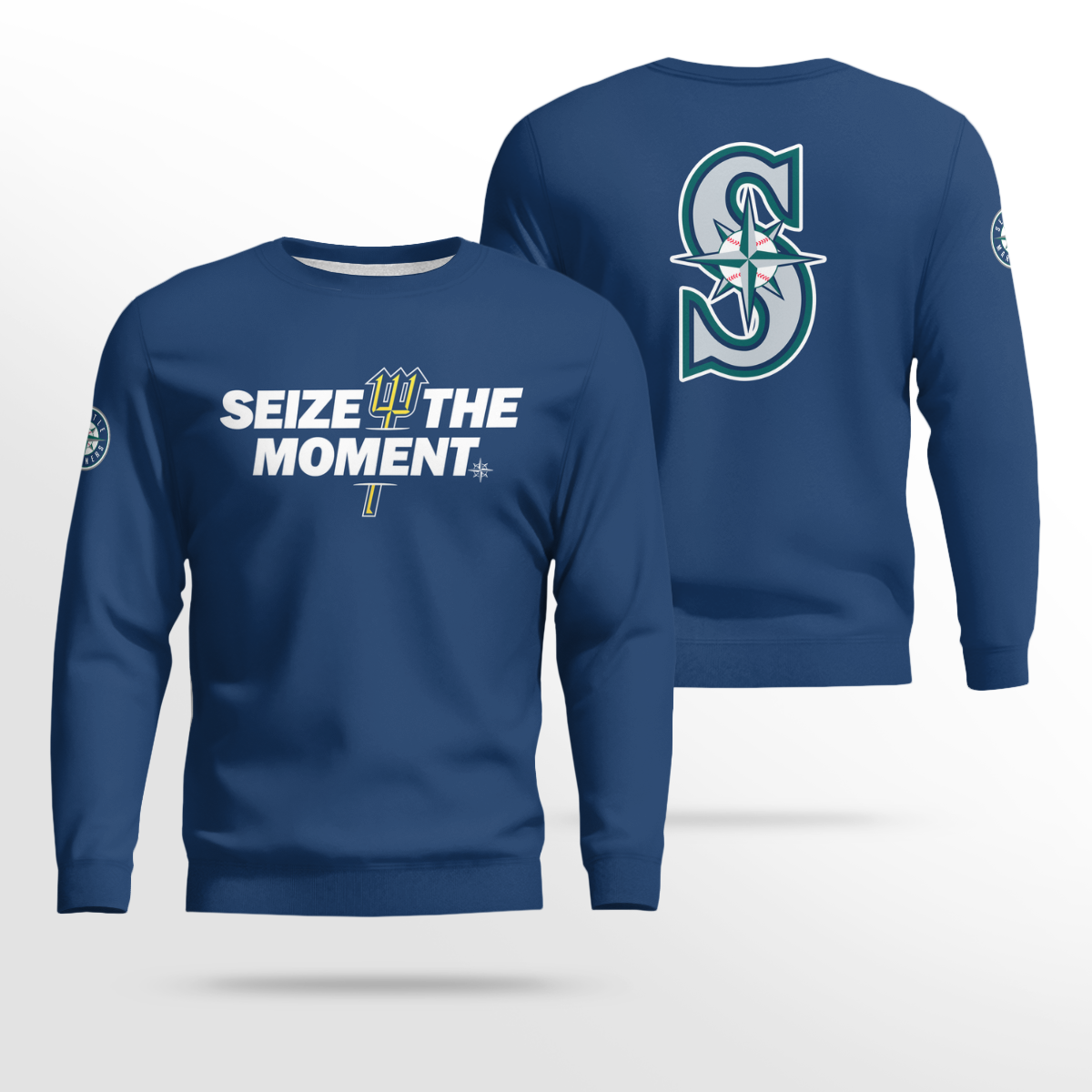 Graphic: Front print featuring the “Seize The Moment” slogan and Mariners team branding