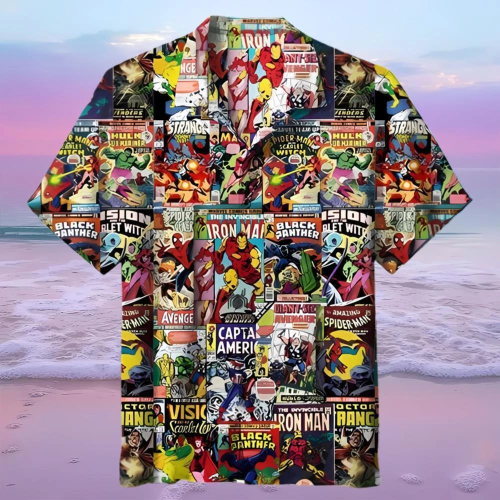 Unleash your inner superhero with the Marvel Comics Hawaiian Shirt. Featuring a vibrant design filled with iconic Marvel Comics characters, this shirt brings the thrilling world of superheroes and supervillains to life in full color. Whether you’re a fan of Spider-Man, Iron Man, Captain America, or the Hulk, this shirt lets you wear your Marvel pride wherever you go. Perfect for fans of all ages, it combines the fun and relaxed vibes of a Hawaiian shirt with the action-packed energy of Marvel Comics.
