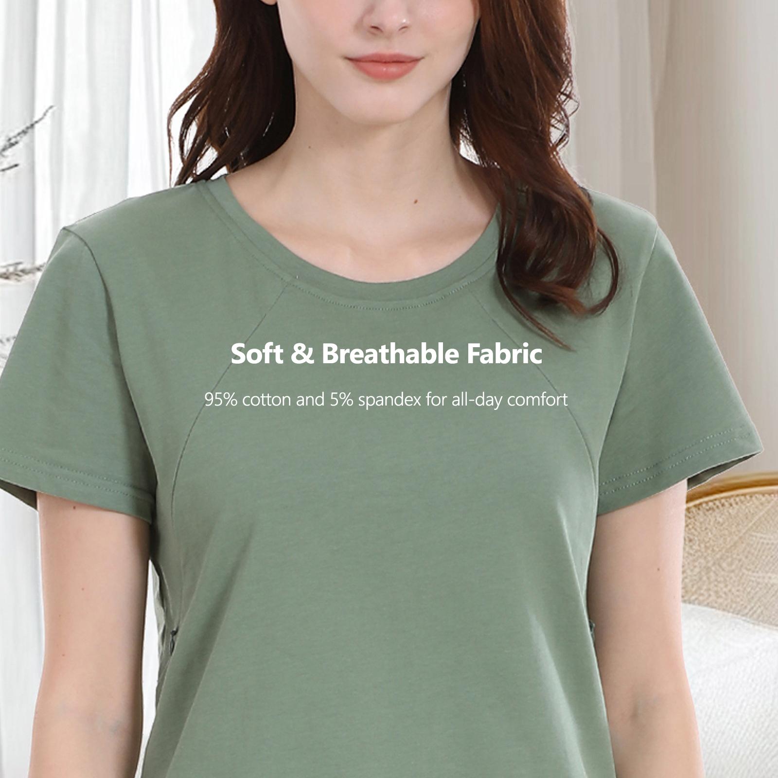 Experience ultimate comfort and convenience with this soft cotton Maternity and Nursing Short Sleeves T-Shirts. Designed for both pregnancy and postpartum, this top features discreet side zipper nursing access for easy and private breastfeeding.