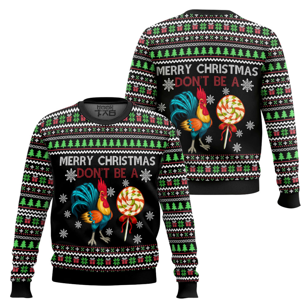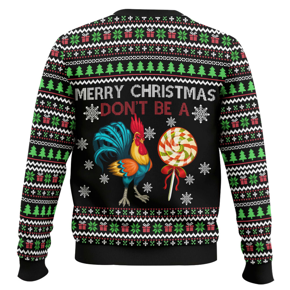 Merry Christmas Cock Print Crewugly Christmas Sweater