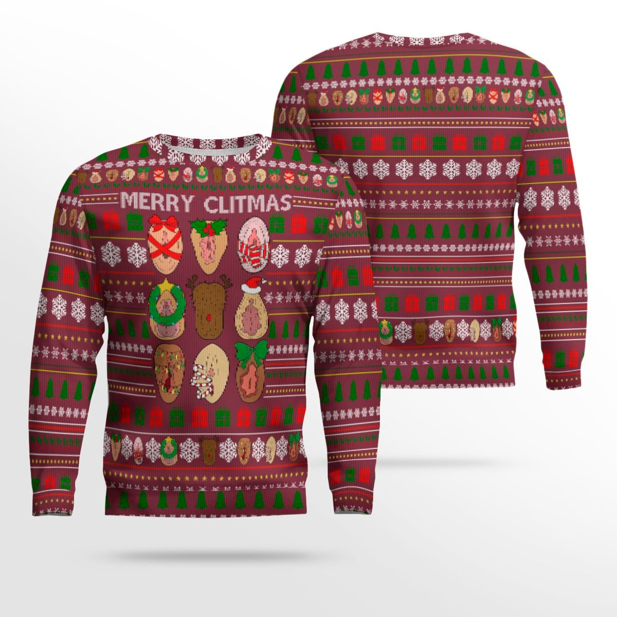 Merry Clitmas Vulva Ugly Christmas Sweater Maroon