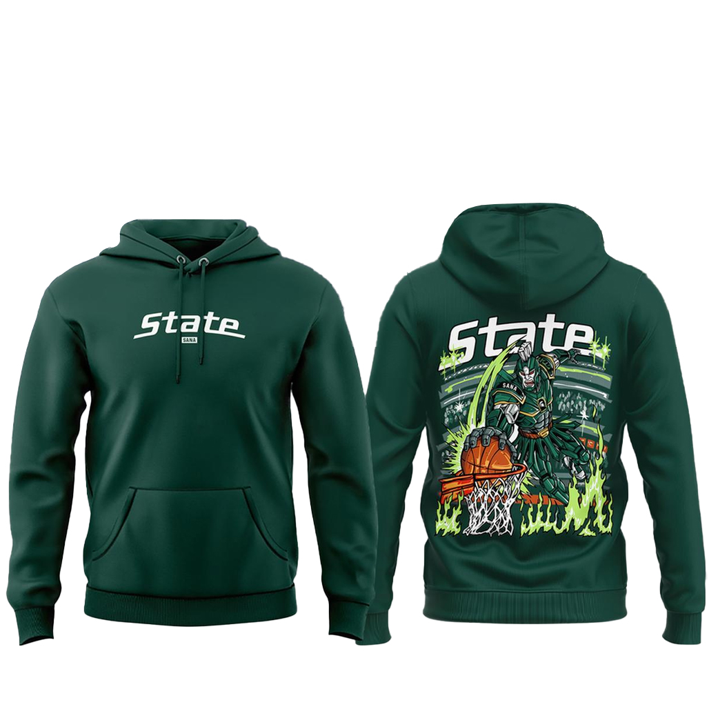 Featuring a bold Michigan State basketball–inspired graphic, the design blends college hoops energy with classic Spartan style. Perfect for game days, campus life, and dedicated Michigan State supporters, this hoodie delivers warmth, comfort, and strong team pride.