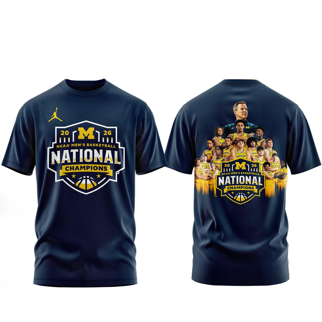 Featuring a bold “National Champion 2026” locker room style inspired graphic with trophy elements and Michigan Wolverines basketball details, the design blends authentic championship vibes with clean, standout fan style. Perfect for celebrations, game days, and loyal supporters, this shirt delivers comfort and true champion energy.