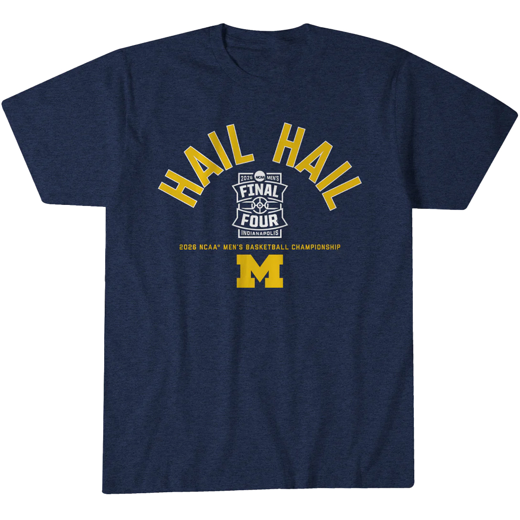 Celebrate tradition and triumph with the Michigan Wolverines MBB Hail Hail 2026 Final Four T-Shirt, honoring a powerful tournament run and the iconic rally cry of Wolverines fans. This tee captures the pride and excitement of reaching the Final Four.