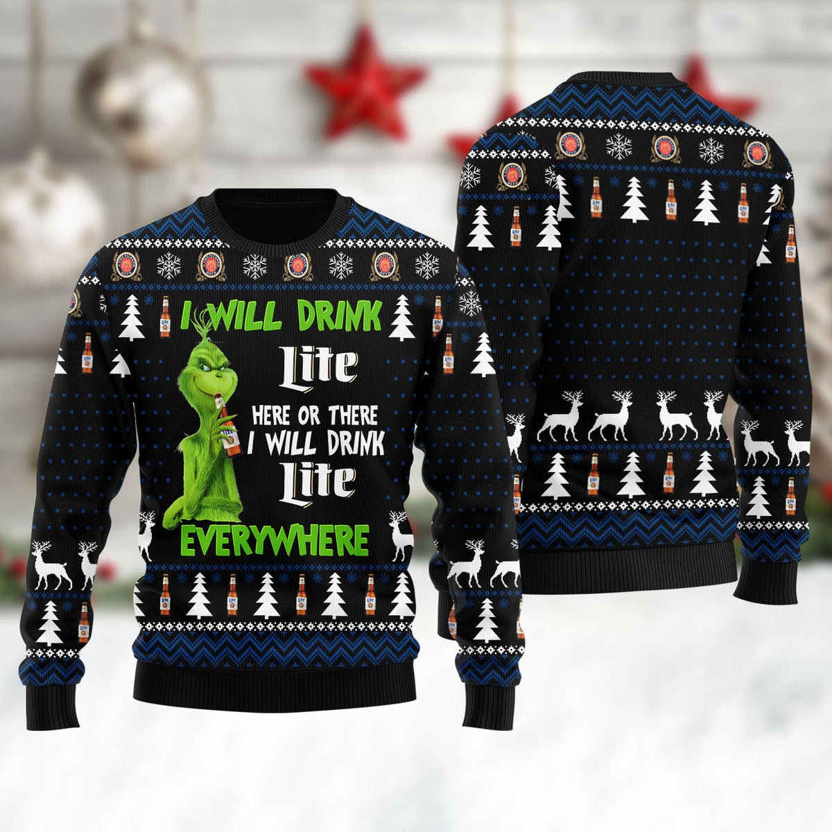 Miller Lite Grinch Will Drink Everywhere Ugly Sweater