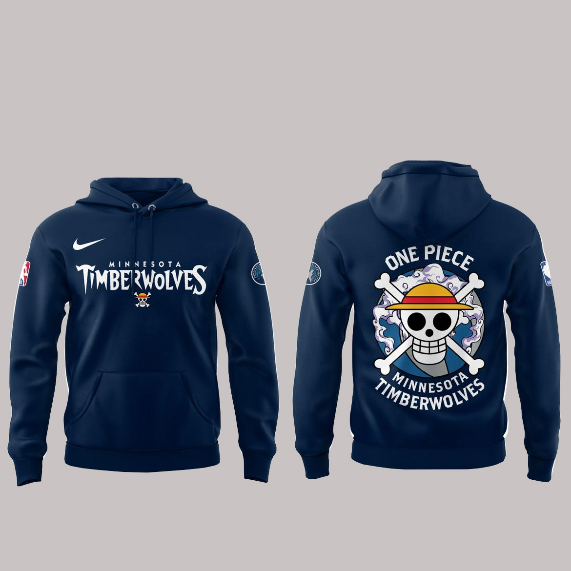 Graphic: High-quality front print showcasing the Minnesota Timberwolves x One Piece Night 2026 celebration design