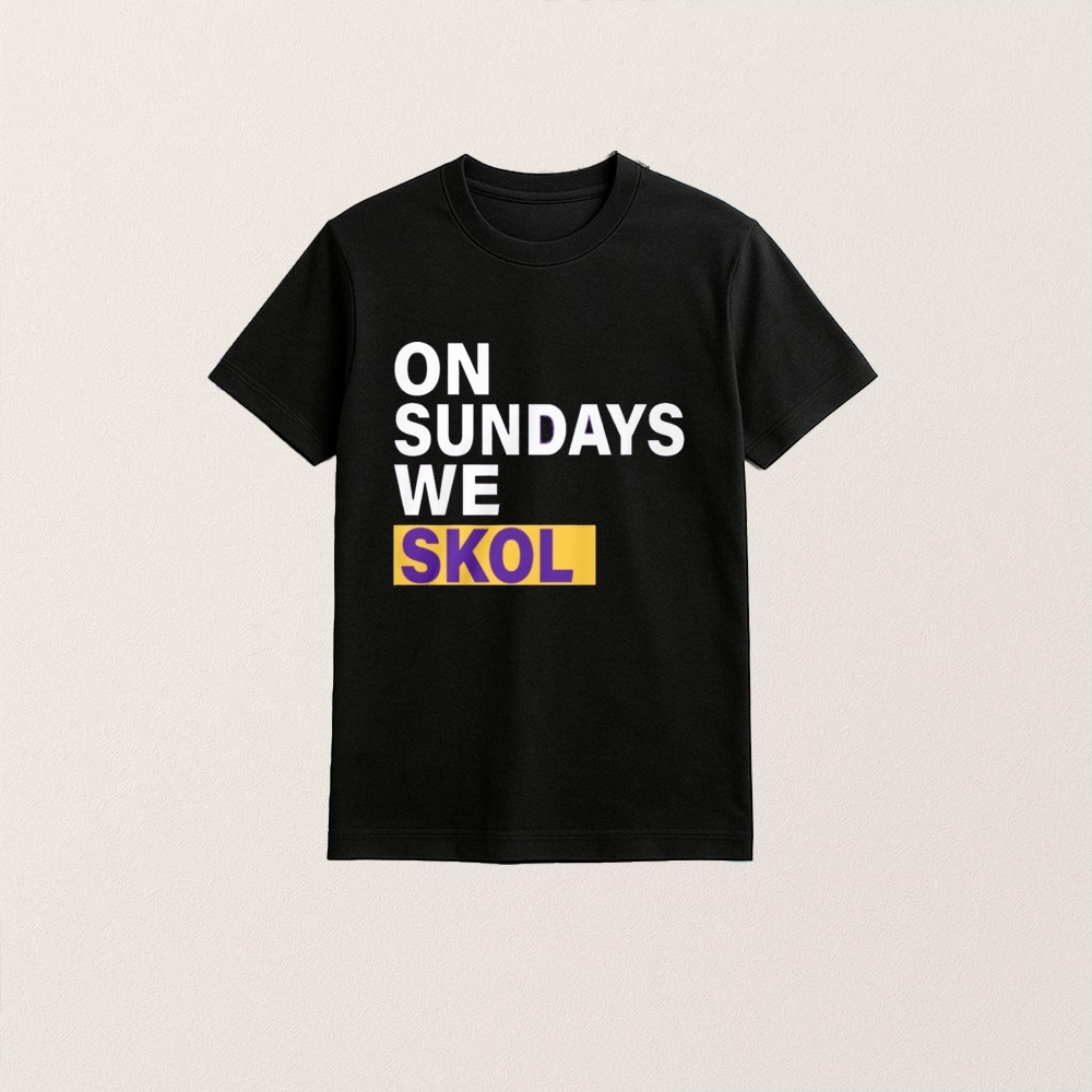 Whether you’re running an online store, designing a team shirt, or looking for a reliable blank to showcase your artwork—this The product is a T-shirt featuring the phrase “On Sundays We Skol” associated with Minnesota Vikings and JJ McCarthy. gives you the quality foundation you need.