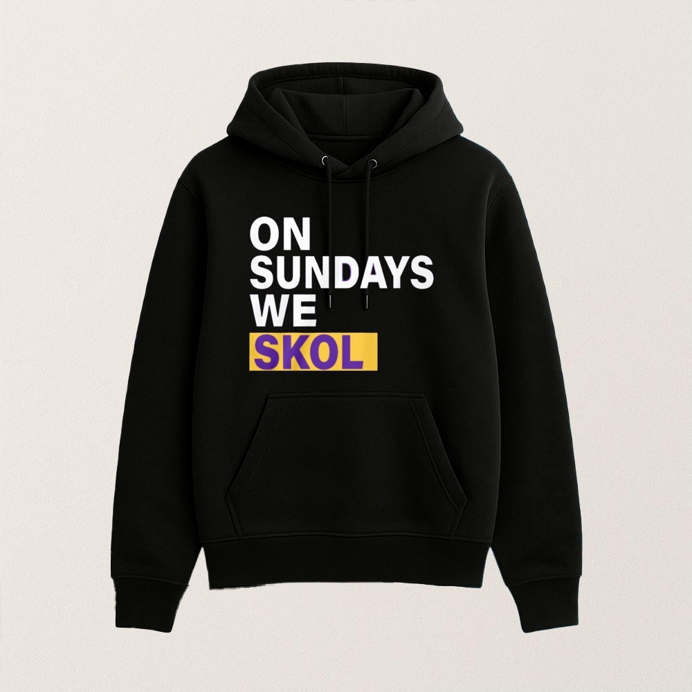 The “On Sundays We Skol” T-shirt featuring JJ McCarthy taps into the rich history and cultural significance of the Minnesota Vikings and their fanbase. The term “Skol” is a traditional Scandinavian toast that has been adopted by Vikings fans as a rallying cry, symbolizing unity and celebration. The Vikings, established in 1960, have a storied history filled with memorable moments and controversies, such as their four Super Bowl appearances in the 1970s and the infamous “Minneapolis Miracle” in 2018. These events have fueled passionate debates and discussions among fans and the broader NFL community. JJ McCarthy, although primarily associated with college football, represents the youthful enthusiasm and potential that fans often project onto their teams. The T-shirt merges these elements, serving as a creative expression of fandom and a nod to the cultural and historical narratives that surround the Vikings, sparking conversations and embodying the spirit of the team and its supporters.
