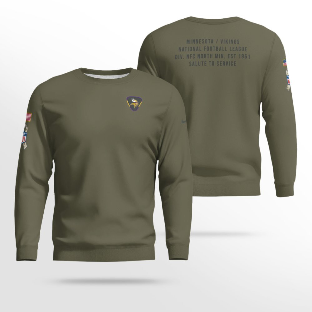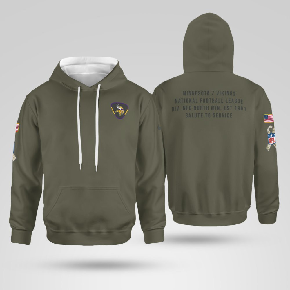 Minnesota Vikings Olive 2025 Salute to Service Hoodie