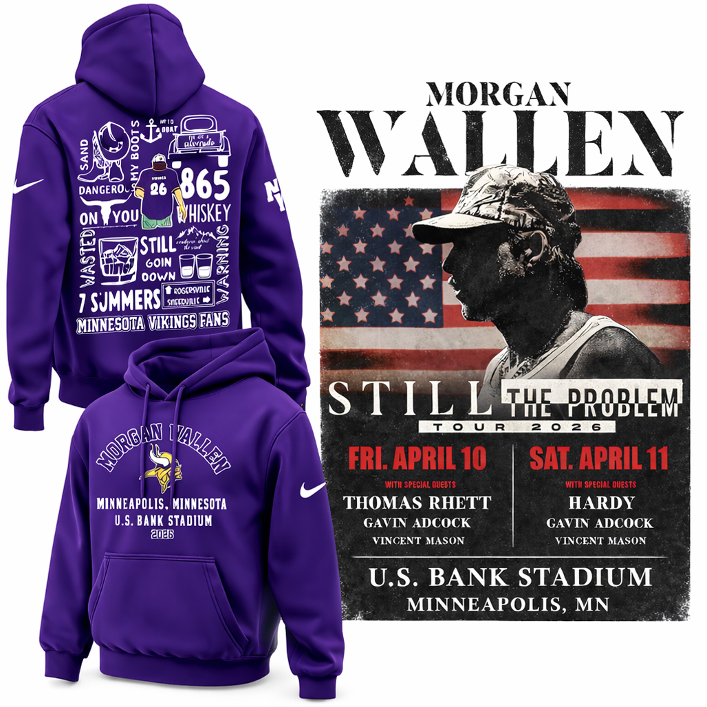 Celebrate country music energy and football pride with the Minnesota Vikings x Morgan Wallen 2026 Still The Problem Tour Hoodie. Inspired by Morgan Wallen’s Still The Problem Tour and the passionate spirit of Vikings fans, this hoodie blends concert-style aesthetics with the bold identity of Minnesota football. It’s the perfect piece for fans who love both stadium game days and unforgettable live music moments.