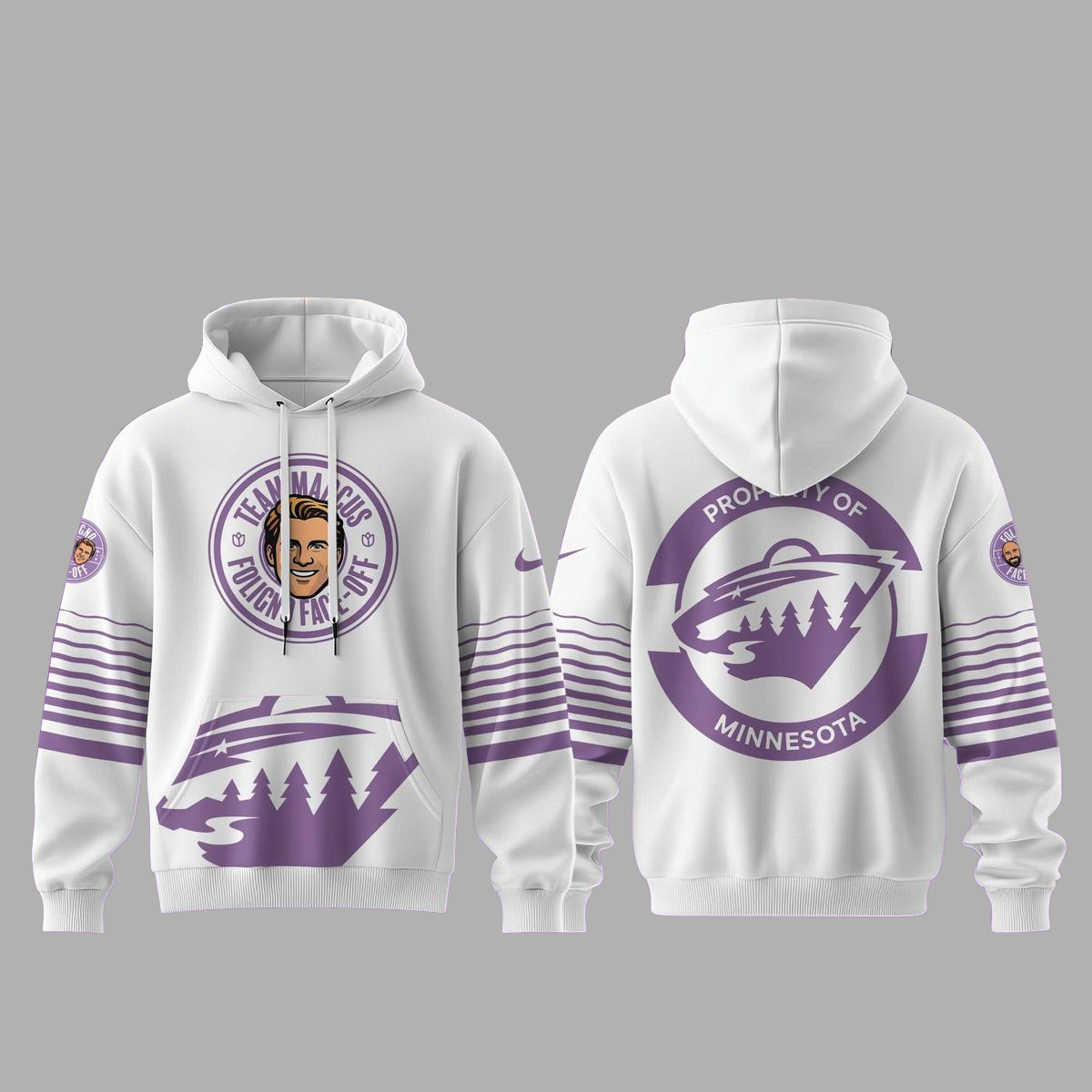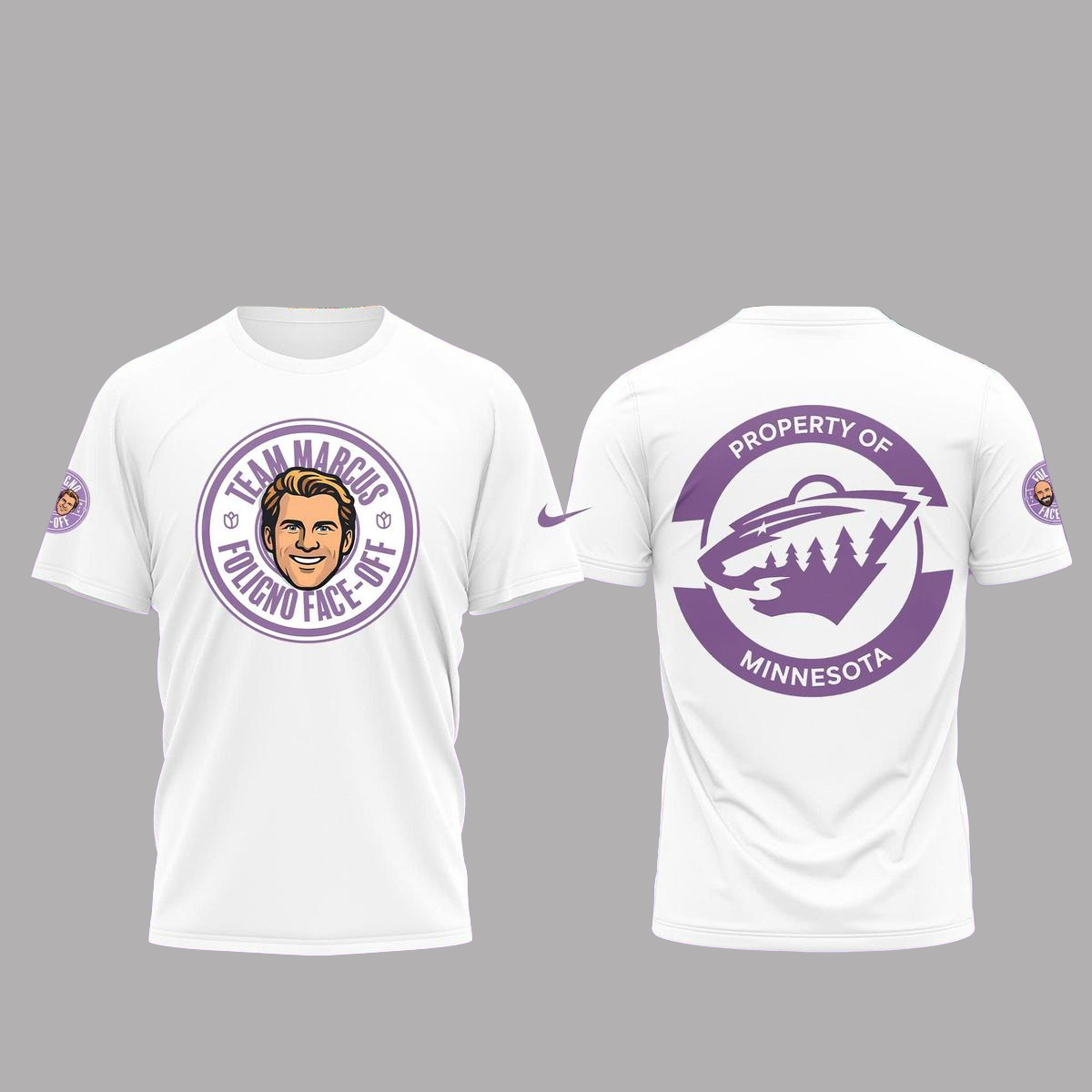 Graphic: High-quality front print showcasing the Minnesota Wild x Foligno Face Off Team Marcus design