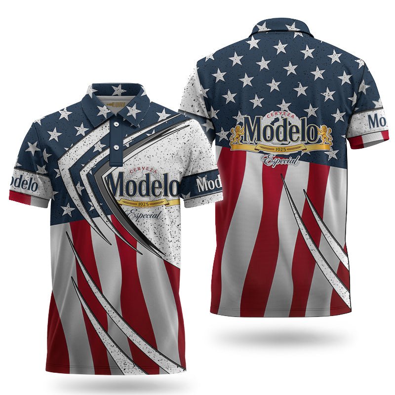 In summary, the Modelo Inside American Flag Polo Shirt is a must-have for anyone looking to add a versatile and stylish piece to their wardrobe. Its exceptional fabric quality, breathable and moisture-wicking properties, and sleek design make it a standout choice for any casual occasion. Experience the perfect blend of comfort and style with this remarkable polo shirt.