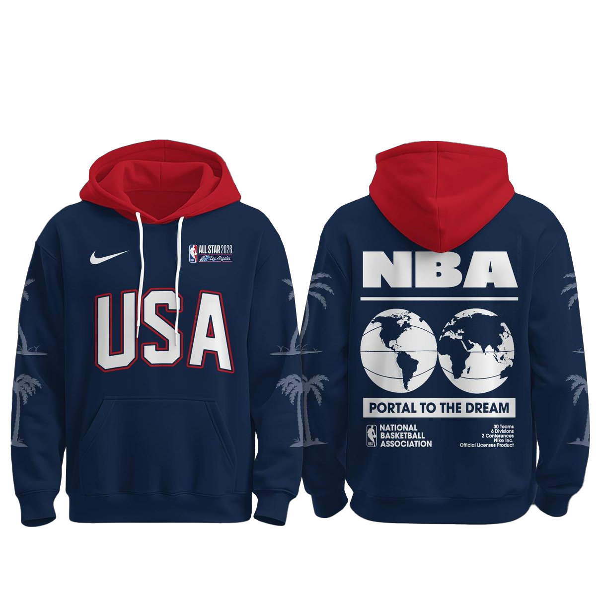 Featuring a standout All-Star 2026 Los Angeles graphic with USA-inspired elements, this hoodie delivers a timeless design that honors the league’s elite showcase. Printed using premium techniques, the artwork stays crisp, vibrant, and built to last.
