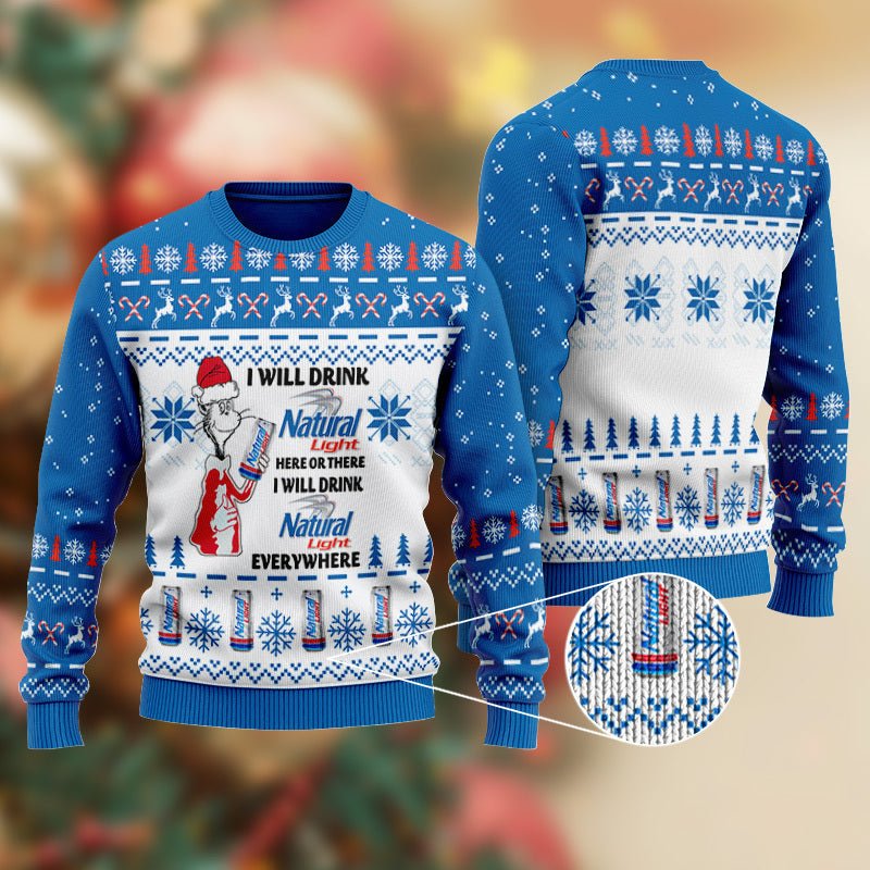 Natural Light Cat Hat Will Drink Everywhere Ugly Sweater