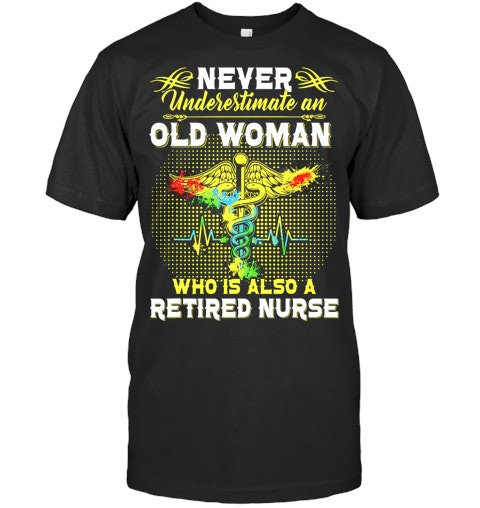 Never Underestimate An Old Woman Who Is Also A Retired Nurse Nursing T Shirt
