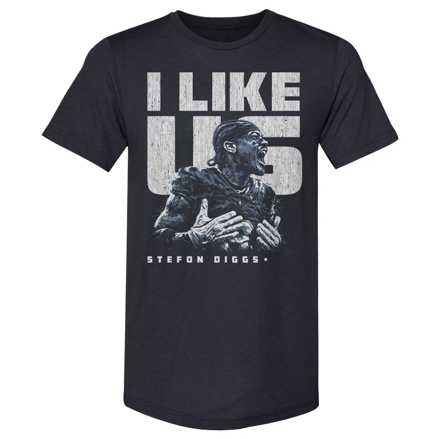 Featuring a striking “I Like Us” graphic inspired by Diggs’ signature attitude, the design highlights the strong connection between the star receiver and his new team. Whether you’re cheering at Gillette Stadium, repping Diggs around town, or adding a standout piece to your Patriots collection, this shirt puts personality and pride at the forefront.