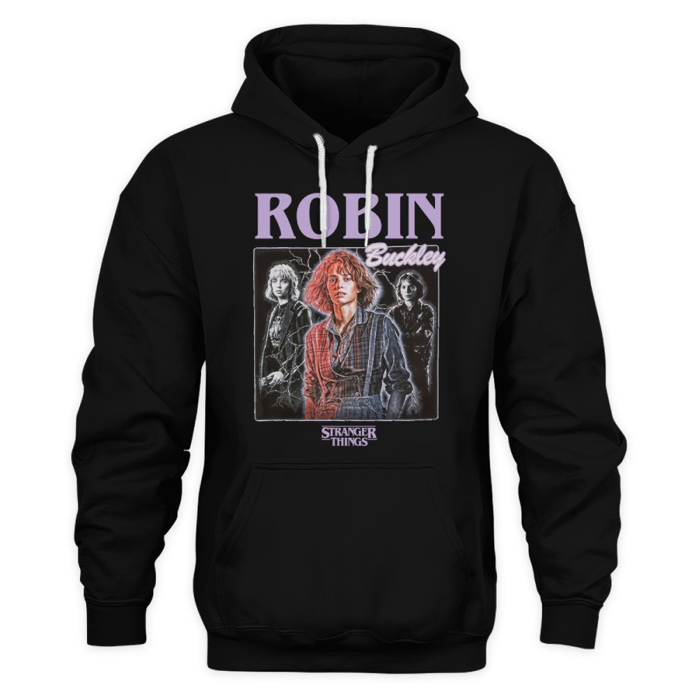 Iconic Design: Featuring a bold print of Robin Buckley, this shirt is a must-have for fans who want to showcase their admiration for the character and the show.