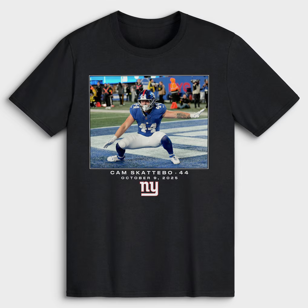 From MetLife Stadium to living rooms across the country, show your support for a player whose talent electrifies the field. This tee puts Giants pride and Cam Skattebo’s energy front and center.
