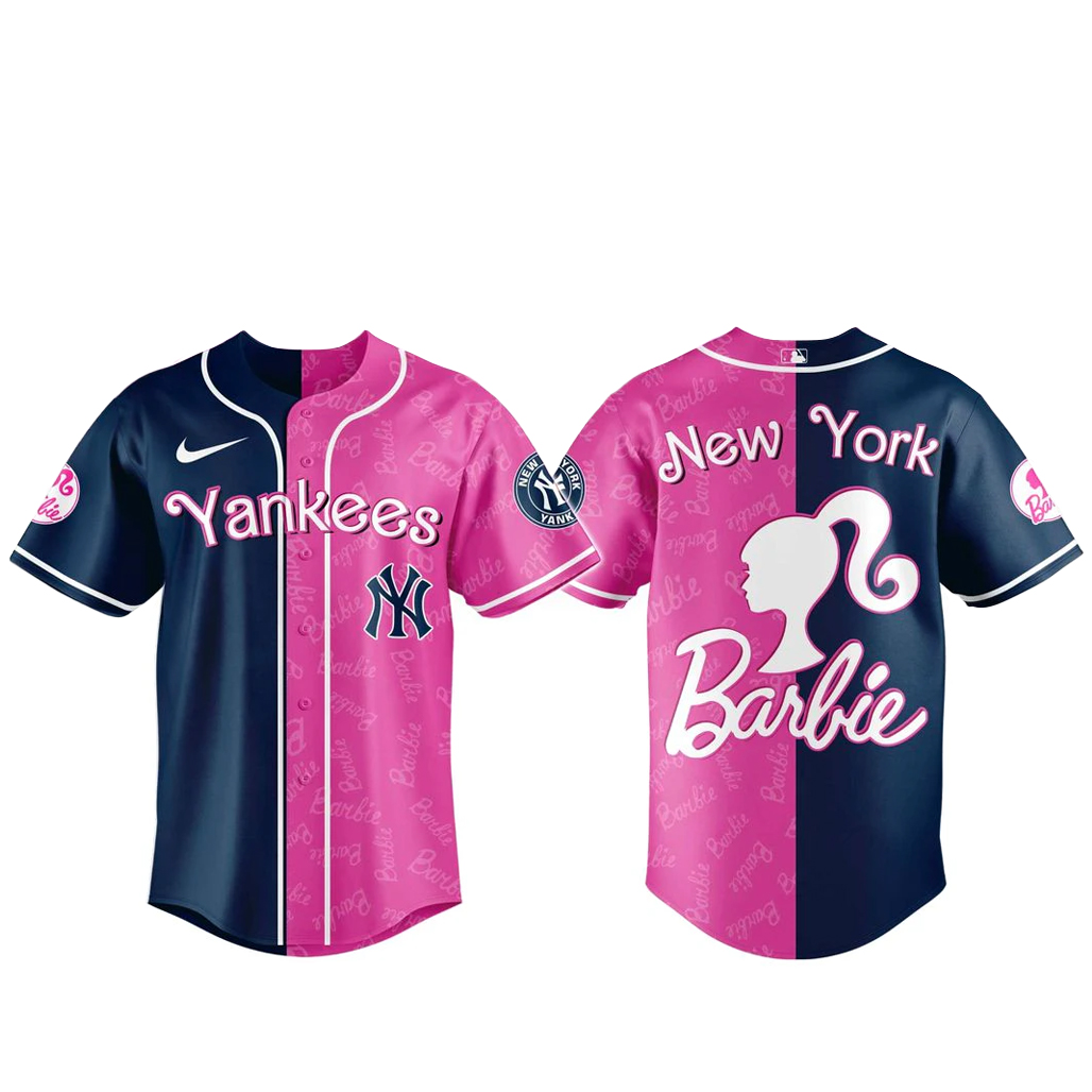 Combining New York Yankees identity with the timeless Barbie style, this design delivers a trendy, eye-catching look full of personality.