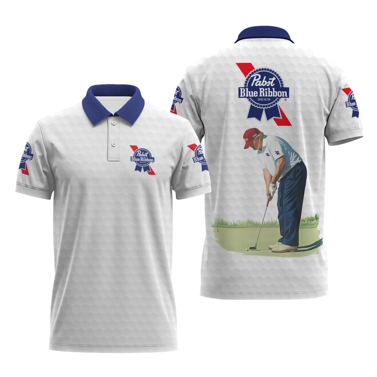 Pabst Blue Ribbon Donald Trump Golf Polo Shirt Pabst Blue Ribbon Donald Trump Golf Polo Shirt