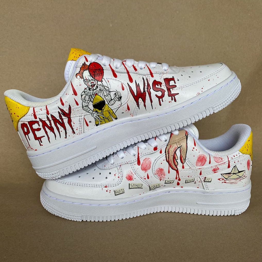 The Pennywise Air Force 1 Shoes Sneakers are the perfect must-have for horror fans who dare to embrace the chilling presence of one of cinema’s most terrifying icons. Inspired by the sinister clown from IT, these sneakers feature eerie red accents, haunting graphic elements, and dark design details that capture the unsettling atmosphere of Derry. Built on the timeless Air Force 1 silhouette, this pair transforms horror nostalgia into bold, statement streetwear.