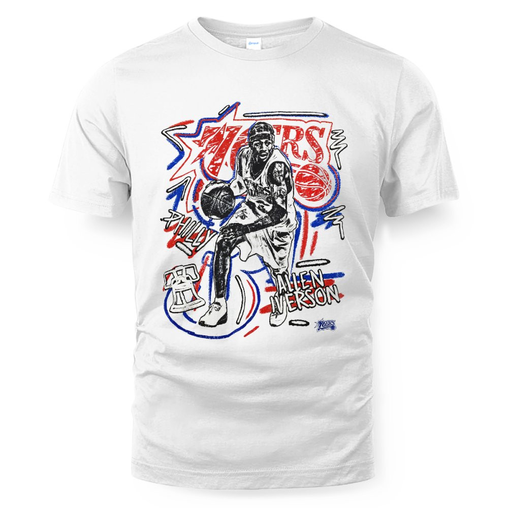 From his unforgettable 2001 MVP season to his unforgettable playoff performances, Iverson transformed the 76ers and the NBA. This shirt celebrates his impact on the game, featuring graphics inspired by his legendary style of play, his tenacity, and his attitude. If you’re a fan of Iverson’s fearless persona, you can wear this t-shirt proudly as a way of honoring his legacy.