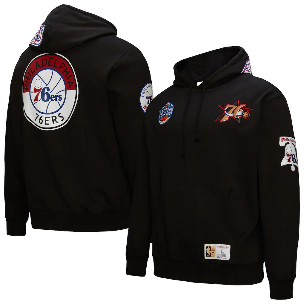 Philadelphia 76ers Mitchell & Ness Hardwood Classics Blackout Collection Hoodie – Black