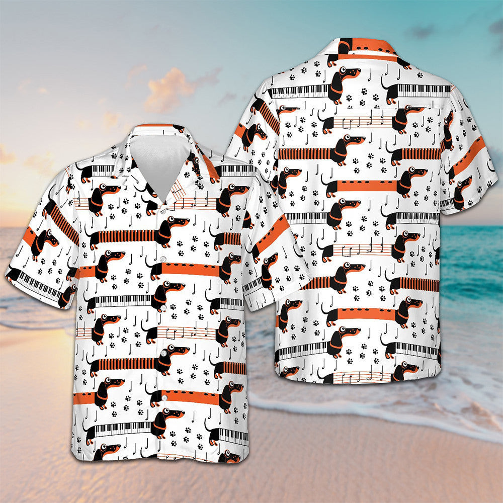 Piano Dachshund Dogs Hawaiian Shirt Dog Lover Funny Button Down Shirt Summer Presents -WearandDecor