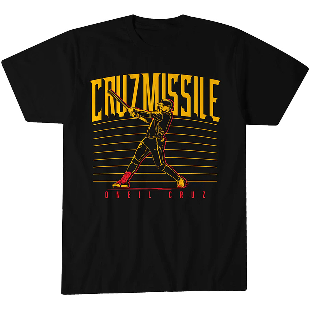 Bring explosive power to your fan gear with the Pittsburgh Pirates Oneil Cruz Hitting Missile T-Shirt, inspired by one of the most electrifying hitters in the game. This tee captures speed, strength, and jaw-dropping impact at the plate.