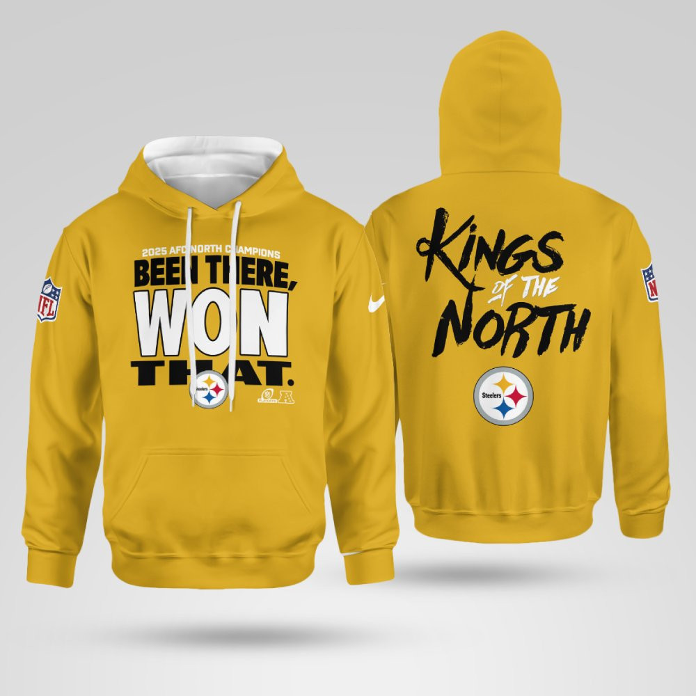Pittsburgh Steelers 2025 AFC North Champions King Of The North Hoodie and T-Shirt