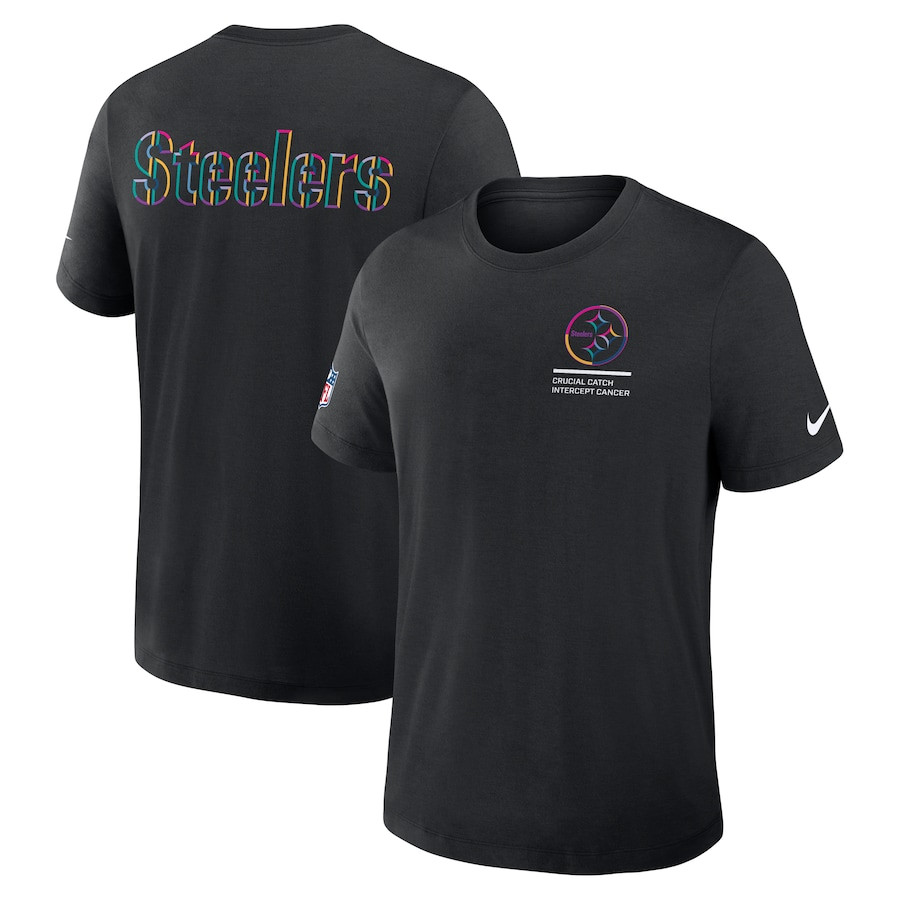 Support the Pittsburgh Steelers and raise awareness for cancer with the Black 2025 Crucial Catch T-Shirt. Featuring bold team graphics and a message of hope, this tee is perfect for Steelers fans who want to make a difference while showing their team pride.