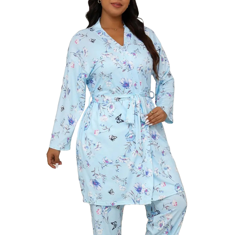 Plus Size Floral Pajama Set with Belted Robe – Cozy & Stylish Loungewear