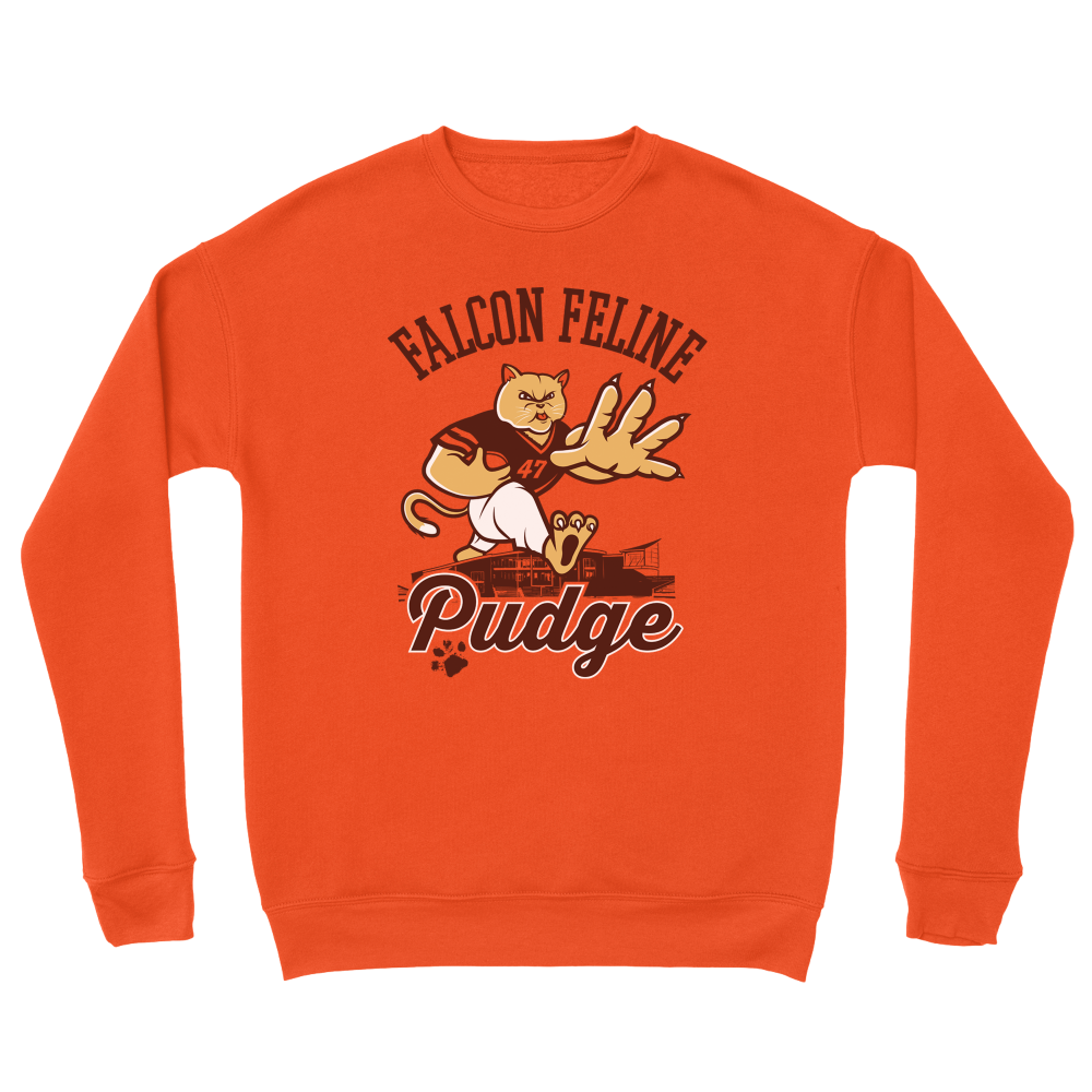 The officially licensed Pudge the Cat crewneck sweatshirt will support George Carlson’s NIL (name image likeness) sponsorship, Bowling Green State University athletics general fund and part of the proceeds will continue to support the?Wood County Humane Society. Also available is our premium Pudge the Cat t-shirt.