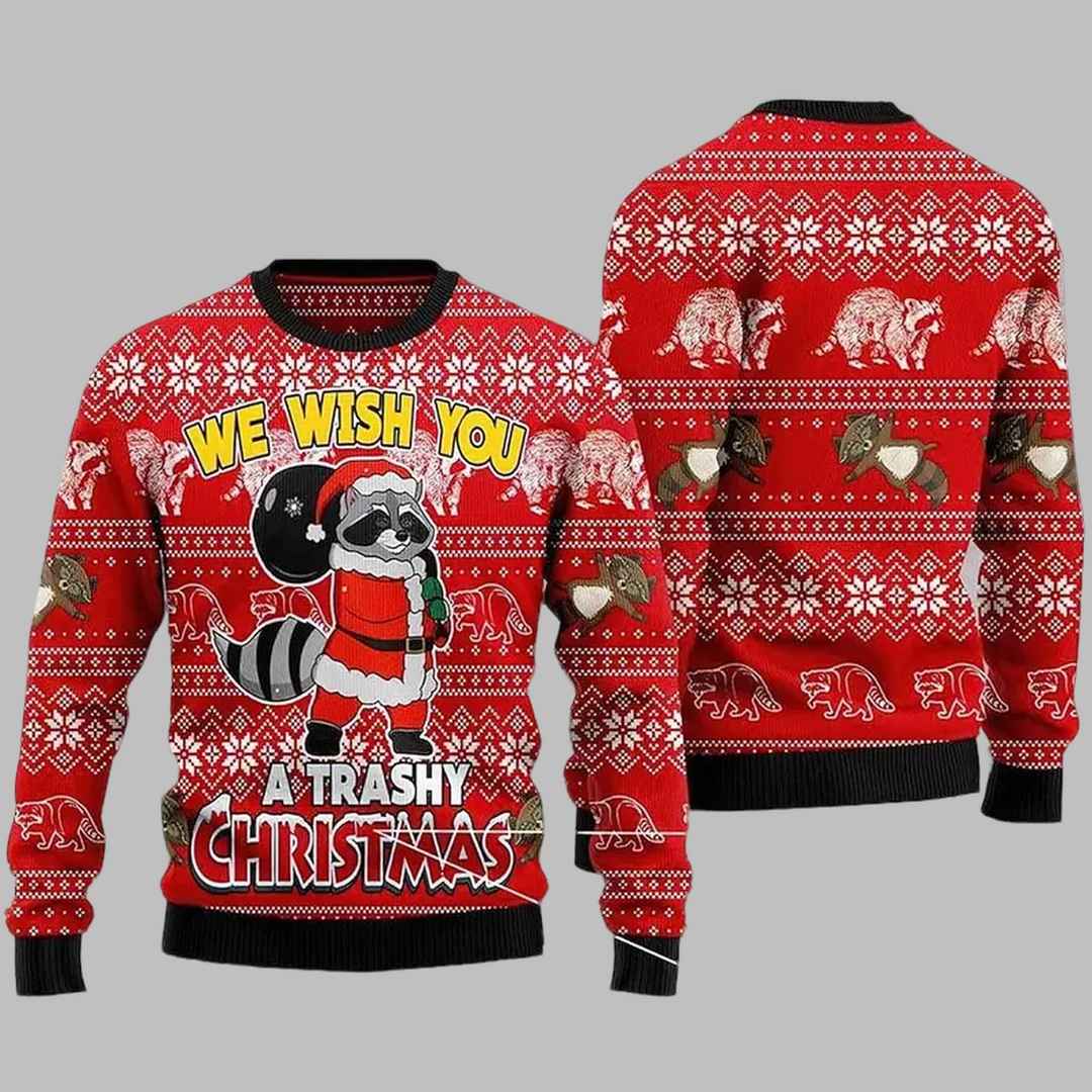 Raccoon We Wish You A Trashy Christmas Ugly Christmas Sweater Raccoon We Wish You A Trashy Christmas Ugly Christmas Sweater