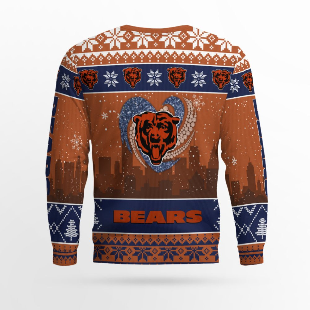 Team colors and festive patterns make this sweater stand out during the holidays or at Soldier Field.